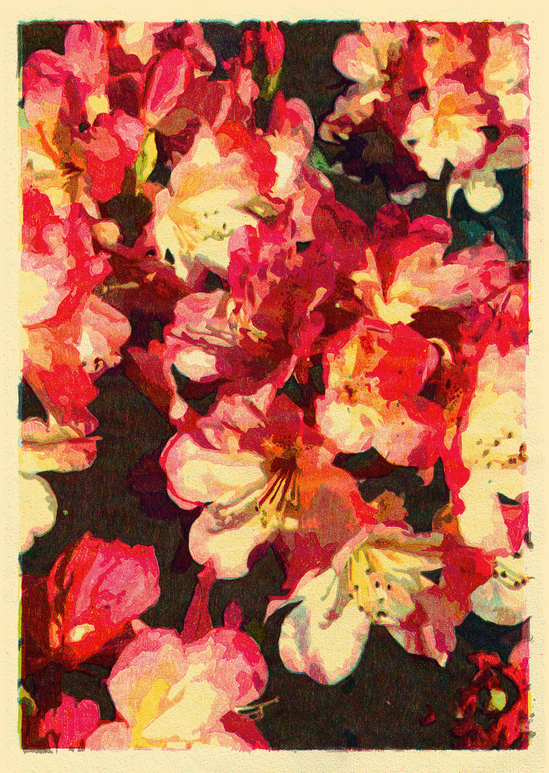 Hand pulled 5 colour screen print